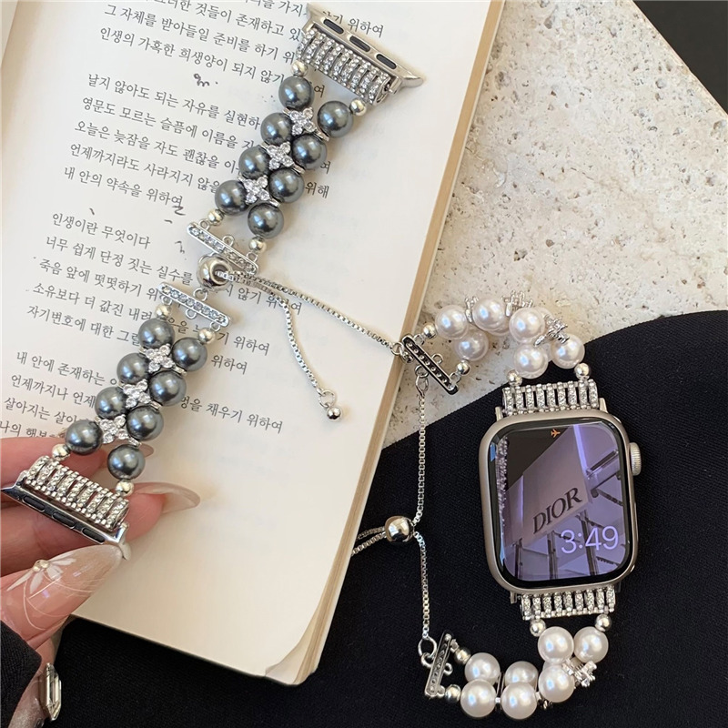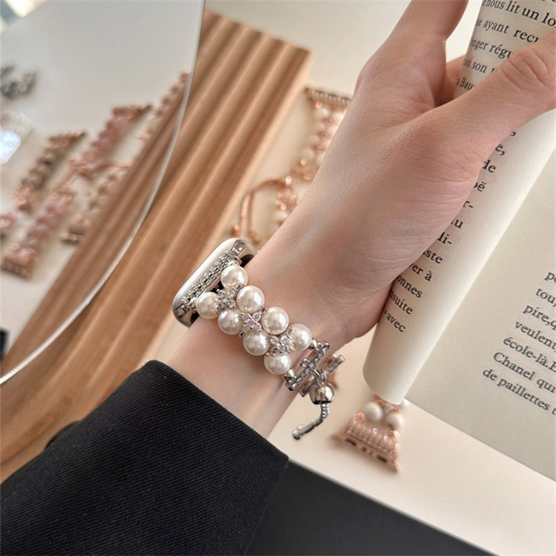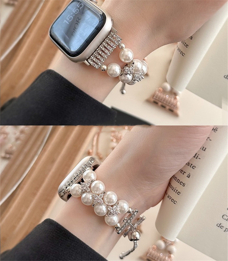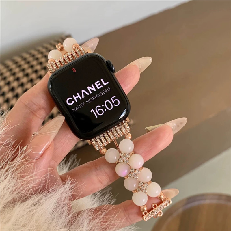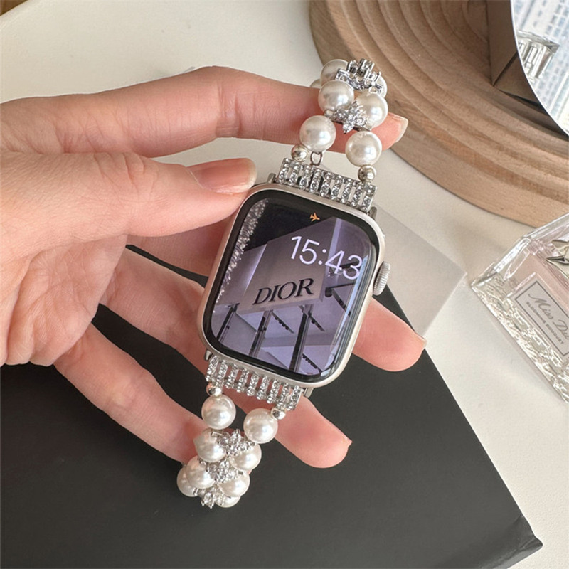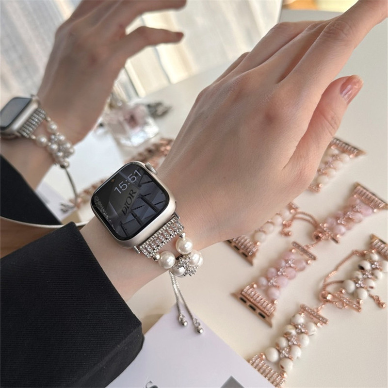 精巧に作り上げられたパール付きアップルウォッチバンド。