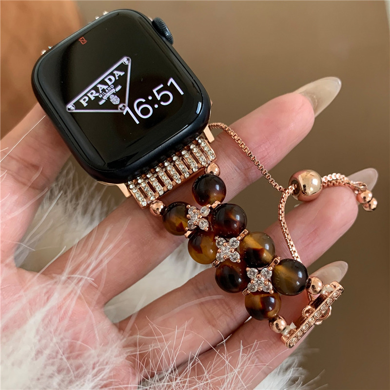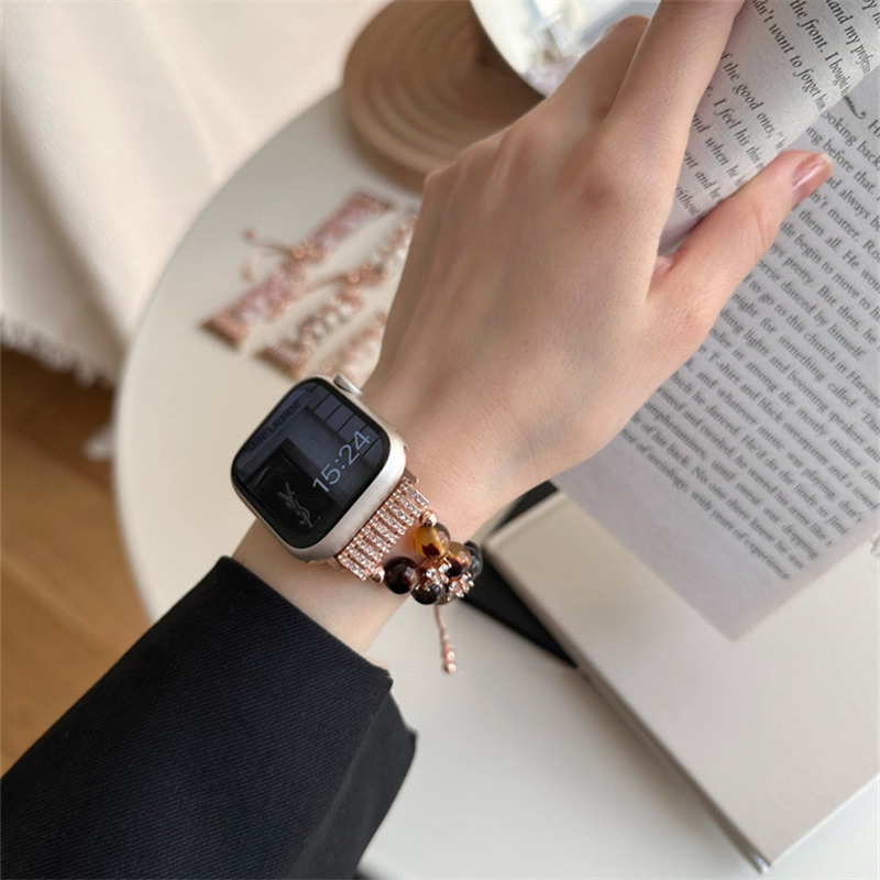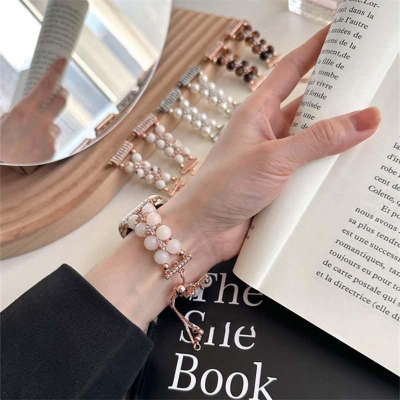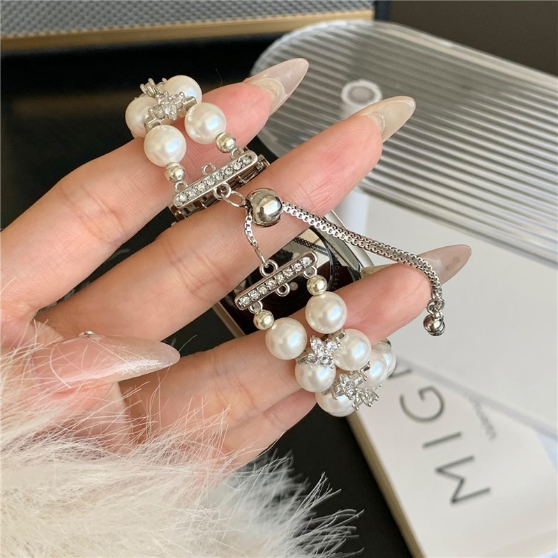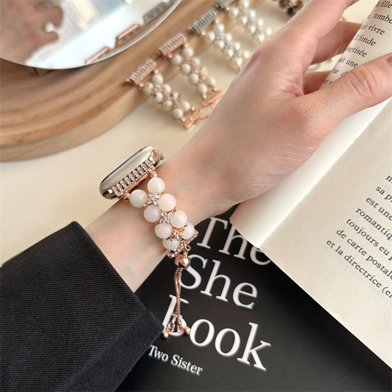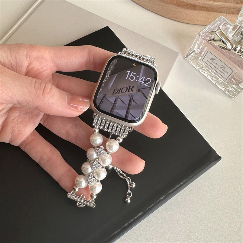 精巧に作り上げられたパール付きアップルウォッチバンド。