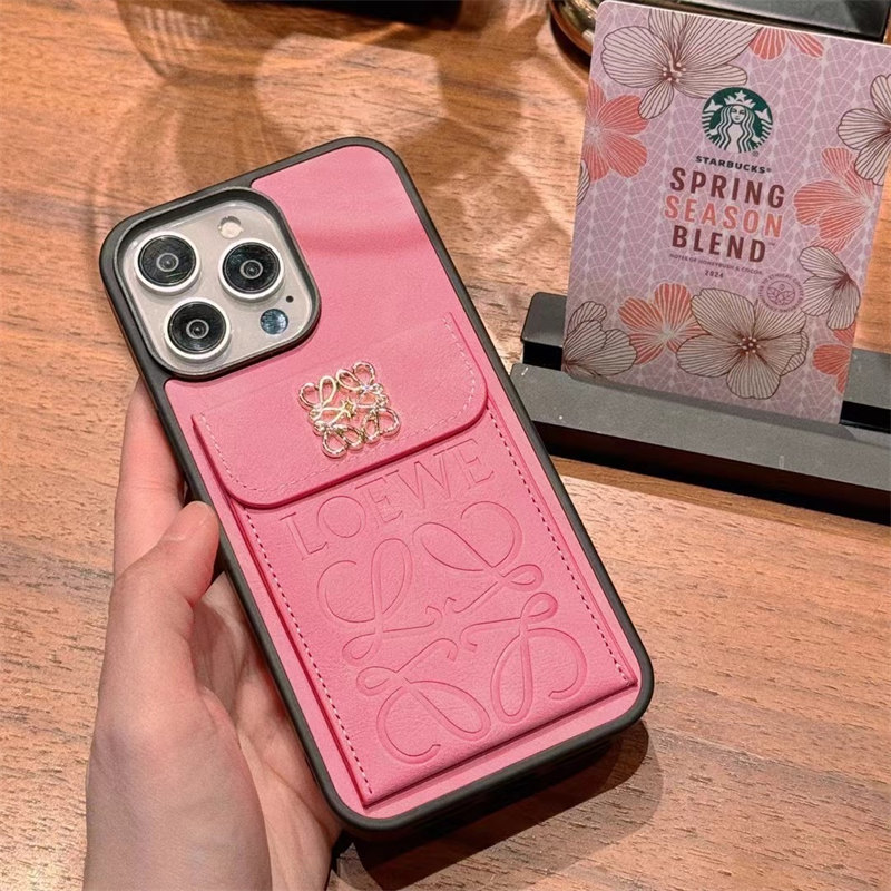 iphone17 ケース ロエベ iphone16pro/16promaxケース カード収納 韓国 iphone15 ケース ハイ ブランド iphone14 ケース レザー ブランド レディース iphone13/13pro ケース 大人可愛い