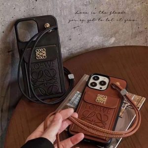 iphone17/17pro ケース ハイ ブランド ロエベ アナグラム iphone16e ケース ブランド スマホ ショルダー iphone16/16plus ケース カード 収納 loewe 携帯ケース 15/14pro/13pro